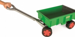 Vozík možno používať samostatne alebo ho pripojiť k ďalším hračkám zo série Gigant, ako je traktor – buldozér či sklápací vozík. Materiál odolný voči poveternostným vplyvom zaručuje dlhú životnosť pri hraní na záhrade, balkóne aj v izbe.