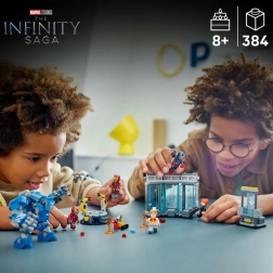 Postavte si ikonickú zbrojnicu IRON MAN s priehľadnými modrými kapsulami, v ktorých vyniknú tri slávne obleky. O akciu sa postará artikulačný mech Igor MK3 s kokpitom pre minifigúrku, dvojica robotických ramien na servisnej platforme a skener na diagnostiku. Sada je ideálna na hranie scén z filmov aj na štýlové vystavenie.
