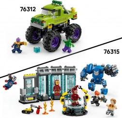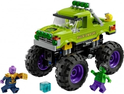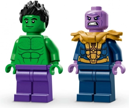 Postavte si hrdinský monster truck, ktorý zvládne každú misiu. Kabína s otváraním ukrýva miesto pre minifigúrku Hulka, obrovské kolesá a odpružené zavesenie si poradia s terénom a potlač Hulk Smash! dodá vozidlu nezameniteľný štýl. Nechýba ani impozantný Thanos s Rukavicou nekonečna a Tesseractom pre epické strety dobra a zla.