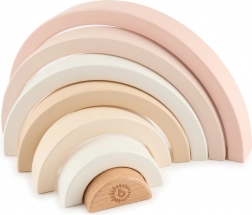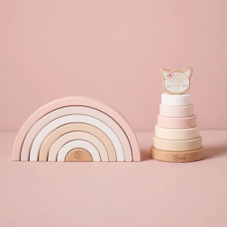 Táto minimalistická drevená dúha sa stane obľúbenou hračkou aj dizajnovým doplnkom detskej izby. Deti môžu oblúky skladať, triediť, stavať mosty a tunely alebo ich využiť ako domčeky a ohrádky pre figúrky. Jednoduché tvary podnecujú fantáziu a samostatnú hru.