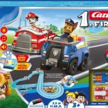 Súčasťou setu sú dve detailne potlačené autíčka hrdinov Chase a Marshall, dva ručné ovládače a stabilné podpery. Vďaka systému spon jednoducho trať zostavíte aj rozoberiete. Autíčka v mierke 1:50 majú magnety a kontaktné kefky pre lepšiu priľnavosť a plynulú jazdu.