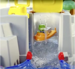 Lode prechádzajú tunelom v jaskyni a schádzajú po vodopáde späť do kanálov – perfektné pre napínavé príbehy a rozvoj fantázie.