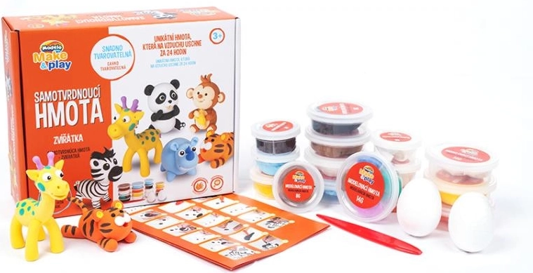 Samotvrdnúca modelovacia hmota MODELO na tvorenie roztomilých zvieratiek. Po vymodelovaní na vzduchu sama vytvrdne, takže sa deti môžu s hotovými výtvormi ďalej hrať. Balenie obsahuje 15 túb a podporuje rozvoj jemnej motoriky aj kreatívnej fantázie.
