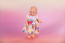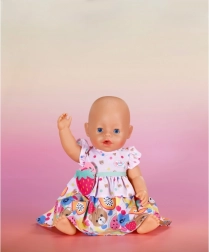 Oživte šatník bábik BABY born týmito kúzelnými šatami s ovocnou potlačou. Vďaka volánikovým detailom a zábavnému opasku s jahôdkou pôsobí outfit sviežo a hravo. Skvele sedia bábikám aj medvedíkom BABY born Teddy vo veľkosti 43 cm.