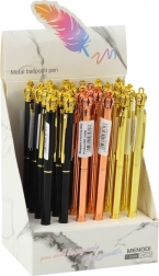 Kovové pero má precíznu špičku o hrúbke 1,0 mm, ktorá zaručuje plynulé a rovnomerné písanie bez prerušenia línie. Vďaka vysokej kvalite modrého atramentu sú poznámky trvanlivé, atrament nebledne a nerozmazáva sa. Otočný mechanizmus uľahčuje rýchle vysunutie náplne, a kovová konštrukcia zabezpečuje dlhú životnosť a elegantný vzhľad po dlhú dobu.
