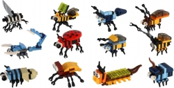 V balení nájdete mix rozmanitých chrobákov a ďalších drobných tvorov, ktoré možno ľubovoľne kombinovať. Dieliky sú kompatibilné v rámci sady, takže vznikajú jedinečné kombinácie a stále nové nápady na kreatívne hranie.
