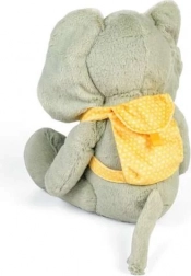 Roztomilý plyšový slon v šedozelenej farbe so žltým batôžkom je dokonalý spoločník pre bábätká aj väčšie deti na hranie aj spanie. Je mäkký, hebký a vyrobený z recyklovaných materiálov s certifikáciou GRS, pričom spĺňa aktuálne európske bezpečnostné normy. Skvele podporuje emocionálny rozvoj a poskytuje pocit pohodlia a bezpečia.