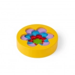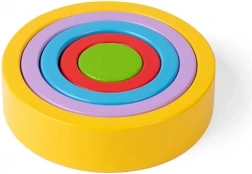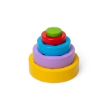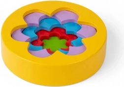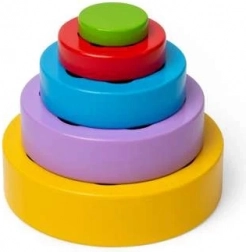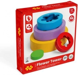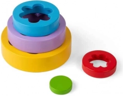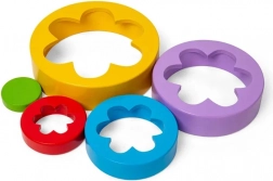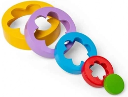 Päť dielov v rôznych veľkostiach umožňuje stavať vežu alebo tvoriť farebné kvetinové vzory. Deti si prirodzene osvojujú farby a rozlišovanie veľkostí.