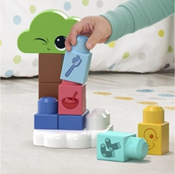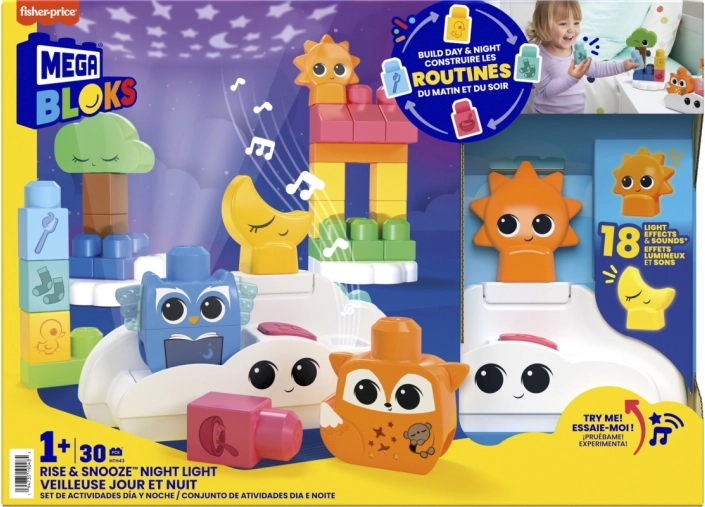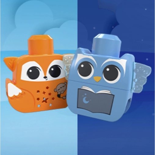 Interaktívna sada Mega Bloks s nočným svetlom pomáha deťom vytvárať zdravý ranný aj večerný rituál. Obsahuje 4 postavičky a zostaviteľné prostredie. Na nočné svetlo možno umiestniť blok mesiaca alebo slnka a spustiť ukolísanky, jemné zvuky, svetelné efekty a hviezdny projektor na večer, alebo optimistické pesničky, zvuky prostredia a slnečné svetelné vzory na ráno. Ideálne pre deti od 1 roka.