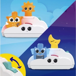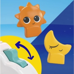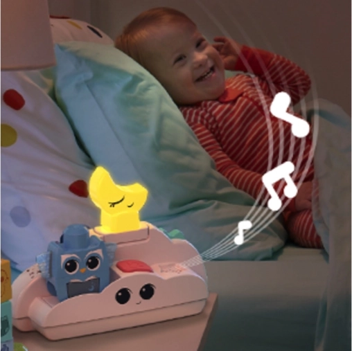 Večerný režim ponúkne upokojujúce ukolísanky, tlmené svetelné efekty a projektor hviezd pre pohodové zaspávanie. Ranný režim rozžiari deň optimistickými pesničkami, zvukmi prírody a sviežimi svetelnými vzormi. Vďaka jednoduchému ovládaniu a robustným kockám je set ideálny pre batoľatá.