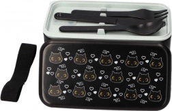 Elegantný čierny lunch box s mačacím motívom je ideálny do práce, školy aj na výlety. Dve úrovne pre oddelené porcie udržia jedlo prehľadné a svieže, zatiaľ čo pevné veko a elastický pásik zaistia bezpečné prenášanie bez nechceného otvorenia.