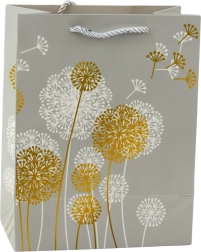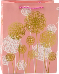 Darčeková taška sa môže pochváliť krásnym motívom púpav, ktorý zjemní vzhľad každého daru.