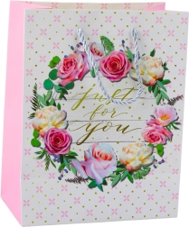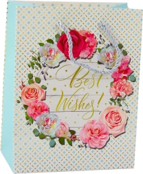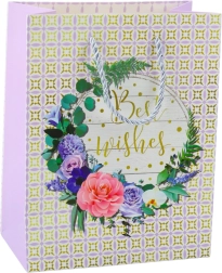 Darčeková taška s romantickým kvetinovým vzorom a zlatým nápisom "Best Wishes" pre výnimočné príležitosti.