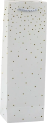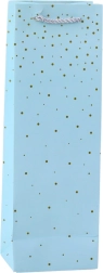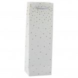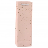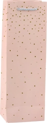 Elegantná papierová darčeková taška na fľašu je perfektným spôsobom, ako zabaliť nápoje pre rôzne príležitosti. Vyrobená z kvalitného papiera a disponuje jemným vzorom zlatých bodiek, ktoré dodávajú eleganciu a štýl.