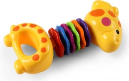 Hrkálka v tvare žirafy motivuje bábätko k uchopovaniu a prirodzene trénuje koordináciu oko–ruka. Príjemné farby priťahujú pozornosť, zatiaľ čo hrkanie prináša radosť z hry a jemne stimuluje zrak aj sluch.