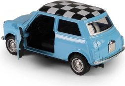 Objavte ikonický Mini Cooper v kvalitnom prevedení kov/plast. Vďaka zotrvačníku stačí natiahnuť a pustiť – auto svižne vyrazí vpred. Detailné spracovanie karosérie, chrómované prvky a štvorcovaný strešný vzor podčiarkujú zberateľský vzhľad modelu.