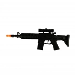 Detský mechanický samopal s dĺžkou 40 cm poteší všetkých malých fanúšikov akčných hier. Pri stlačení spúšte vydáva realistické zvuky a pri „streľbe“ iskrí, čo umocňuje autentický herný zážitok bez nutnosti batérií.