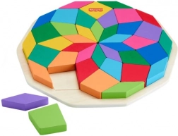 Drevené puzzle Mandala od Fisher-Price je ideálna hračka pre deti, ktoré sa chcú naučiť riešiť problémy a rozvíjať jemnú motoriku. Skladá sa zo 40 pestrofarebných kúskov, ktoré možno podľa chuti zostavovať alebo triediť na špeciálnej podložke s drážkami, ktorá pomáha tvoriť geometrický vzor mandaly. Toto pestrofarebné puzzle pomáha rozvíjať tiež koncentráciu a koordináciu ruka-oko.