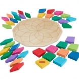 Táto drevená skladačka obsahuje nádherný geometrický vzor mandaly v pestrofarebných farbách, čo stimuluje farebné vnímanie a kreatívne myslenie u detí.