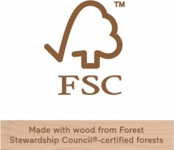 Ako znak trvalo udržateľnej výroby nesie hračka certifikát FSC, ktorý potvrdzuje zodpovedné využívanie lesných surovín.