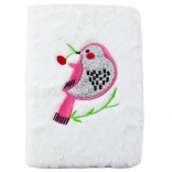 Originálny zápisník s mäkkým, chlpatým obalom je ideálnym doplnkom pre tých, ktorí oceňujú jedinečné a príjemné príslušenstvo. Biely obal je ozdobený výšivkou pôvabného vtáčika v ružových a strieborných farbách, čo zápisníku dodáva jedinečné čaro a eleganciu.