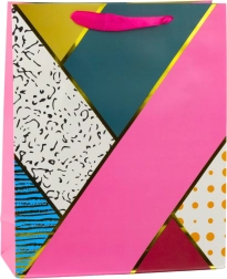 Kombinácia kontrastných geometrických vzorov a žiarivých farieb upúta pozornosť a povýši každý darček na štýlový doplnok.