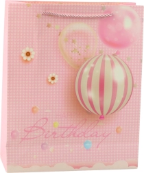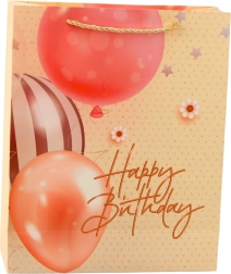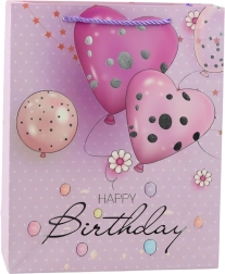 Darčeková taška s veselým motívom balónikov a elegantným nápisom Happy Birthday je skvelou voľbou na každé narodeniny. Kombinuje atraktívny dizajn v ružovej, modrej, fialovej a broskyňovej farebnosti s praktickým prevedením, ktoré bezpečne unesie aj ťažšie darčeky.