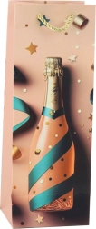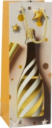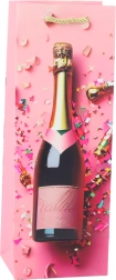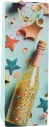 Elegantná papierová darčeková taška na fľašu s motívom šampanského je ideálna na štýlové odovzdanie vína či sektu na každú oslavu. Ponúka pevný ozdobný kartón, pletené zlaté ušká a slávnostný dizajn s konfeti a hviezdami v pastelových farbách. Perfektná na narodeniny, svadby, Silvester aj iné výnimočné chvíle.