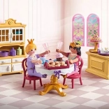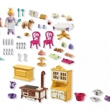 Ponorte sa do sveta kreatívnej hry s kráľovskou kuchyňou Playmobil Princess Magic. Dve princezné, oblečené v roztomilých zásterách, pripravujú lahôdky a servírujú ich na ozdobné podnosy. Sada ponúka mnoho detailov, vrátane pekne navrhnutého nábytku a realistických kuchynských potrieb, ktoré prinášajú kúzlo kráľovského varenia k životu.