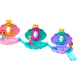 Zažite kúzelný kúpeľ s herným setom DISNEY PRINCESS morská víla v mušličke – otvorte trblietavú mušličku, objavte bábiku morskej víly a vďaka prísavke a šmykľavke ju nechajte kĺzať po stene vane. Mix variant, možnosť prepojovania setov, ideálne od 3 rokov.