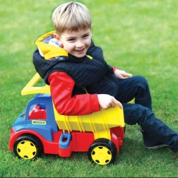 Veľká vyklápacia „tatrovka“ WADER GIGANT je navrhnutá pre maximálnu zábavu a dlhú životnosť. Pevná konštrukcia s nosnosťou do 150 kg umožňuje deťom na auto bezpečne si sadnúť, prevážať hračky či prírodniny a jednoducho vyklápať náklad pomocou praktickej korby s madlom.