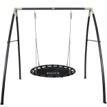 Táto voľne stojaca hojdačka s okrúhlym sedadlom s priemerom 120 cm je skvelou voľbou pre každý dvor či záhradu. Oceľový rám s práškovou povrchovou úpravou a vnútorným aj vonkajším zinkovaním poskytuje dlhodobú ochranu proti korózii, zatiaľ čo textilné sedadlo a mäkké PP laná sú príjemné na dotyk a zároveň odolné voči poveternosti.