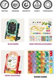 Obojstranná magnetická tabuľa od WOOPIE je všestranná hračka, ktorá podporuje detský rozvoj a učí ich čísla a písmená hravou formou. Je určená pre deti od 3 rokov a obsahuje 56 prvkov, ktoré ponúkajú rôzne možnosti použitia.