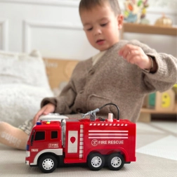 Hračka napodobňuje skutočné hasičské auto vďaka zvukovým, svetelným a vodným efektom.
