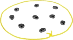 - Obsah: 20 magnetických kamienkov rôznych tvarov, žltá šnúrka na vymedzenie hracej plochy, látkové vrecúško, návod