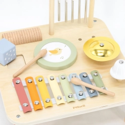 Stolček obsahuje rôzne nástroje, ktoré pomáhajú rozvíjať hudobný sluch a rytmické cítenie vášho dieťaťa.
