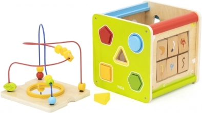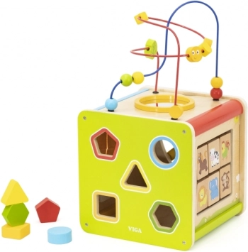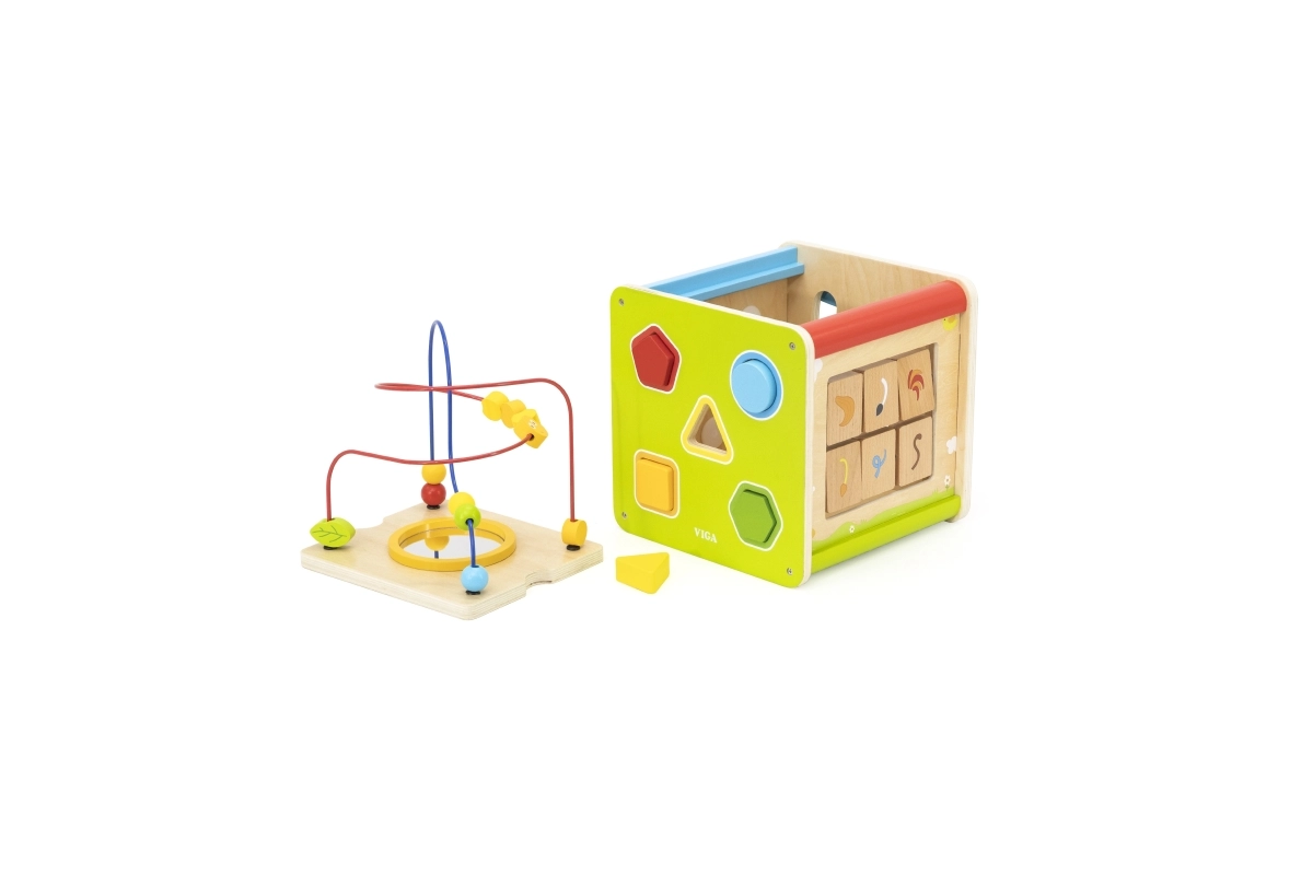 drevená vzdelávacia kocka 5v1 s labyrintom, tvarmi a xylofónom