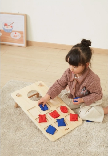 Súčasťou sú mäkké látkové vrecúška v dvoch farbách (červené a modré) pre jednoduché rozlíšenie tímov. Deti si pri hádzaní precvičia jemnú motoriku, koordinačné zručnosti aj trpezlivosť, dospelí ocenia rýchle pravidlá a svižnú súťaž.