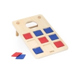 Užite si dve hry v jednom kompaktnom sete: presný hod do cieľového otvoru v štýle cornhole a piškvorky s krúžkami na doske s deviatimi výrezmi. Stabilná drevená konštrukcia s hladkým povrchom, zaoblenými hranami a mierne naklonenými nožičkami zabezpečuje pohodlnú a bezpečnú hru doma aj vonku.