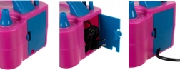 Je vybavená dvoma tryskami pre súčasné nafukovanie dvoch balónikov, čo výrazne šetri čas a úsilie počas príprav. Praktický úložný priestor pre kábel a prenosný dizajn vďaka rukoväti činí pumpu ideálnym spoločníkom pre každého organizátora udalostí.