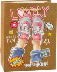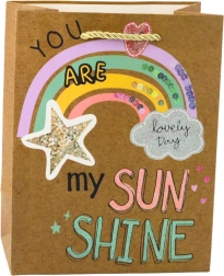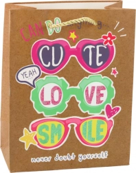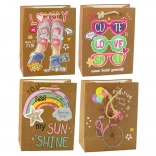 Taška sa vyznačuje štyrmi rôznymi motívmi, každý očarujúci živými farbami a pozitívnymi heslami, ktoré podčiarkujú mladistvý a optimistický charakter. Silné povrazové uši zabezpečujú pohodlné prenášanie a sú farebne zladené s dizajnom. Taška o rozmeroch 23 x 18 x 10,5 cm je ideálna na balenie stredných a menších darčekov, ako sú kozmetika, doplnky, knihy alebo sladkosti.