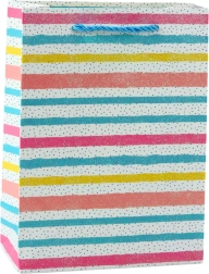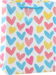 Taška ponúka hravé vzory s motívmi srdcí, hviezdičiek, bodiek a pruhov, ktoré pridávajú každému daru radostný nádych.