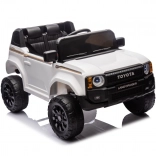 Štýlové detské elektrické autíčko TOYOTA LAND CRUISER PRADO v bielej farbe ponúkne deťom realistický zážitok z jazdy. Disponuje 12V/7Ah batériou, dvojicou motorov pre plynulý rozjazd, penovými kolesami EVA pre pohodlnú jazdu, LED svetlami a moderným audio panelom s MP3, USB a Bluetooth. O bezpečie sa starajú bezpečnostné pásy, otváracie dvere a diaľkové ovládanie 2,4 GHz s funkciou Stop.