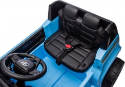 Štýlové detské vozidlo TOYOTA Land Cruiser PRADO v modrej farbe ponúka 2 výkonné motory, batériu 12 V / 7 Ah, mäkké EVA kolesá a kožené sedadlo s pásmi. Vďaka otváracím dverám, LED svetlám a audio panelu s MP3/USB/Bluetooth si deti užijú realistickú jazdu, zatiaľ čo rodičia majú istotu vďaka diaľkovému ovládaču 2,4 GHz so STOP.