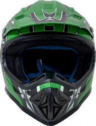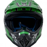 Táto zelená motokrosová a enduro prilba kombinuje nízku hmotnosť a vysokú úroveň bezpečnosti vďaka odolnej škrupine z ABS. Inovatívny systém ventilácie udržiava hlavu v suchu a pohodlí aj pri náročnej jazde v teréne, zatiaľ čo nastaviteľný šilt chráni proti slnku a odlietajúcim nečistotám.