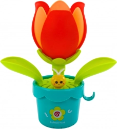 Naplnením priloženej krhličky a zalievaním kvetiny sa okvetné lístky kvetu začnú postupne otvárať a ukazovať sympatického žltého tvorečka. Tento efektný moment určite vyčarí úsmev na tvári každého dieťaťa a povzbudí ho k ďalšej hre. Táto hračka nielen poskytuje skvelú zábavu, ale tiež rozvíja koordináciu ruky a oka, trpezlivosť a pochopenie príčinných vzťahov.