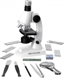 Mikroskop je kompaktný, takže sa ľahko zmestí do batohu, zásuvky alebo na stolík. Je napájaný 5 AA batériami (nie sú súčasťou balenia), čo umožňuje používanie bez potreby elektrickej zásuvky – ideálny pre domáce použitie aj na cestách. K sade je priložené množstvo príslušenstva, ako sú sklíčka, pipeta, pinzeta, lupa alebo laboratórne nádoby, ktoré umožňujú prípravu a skúmanie vzoriek – ako v pravej laboratórii.