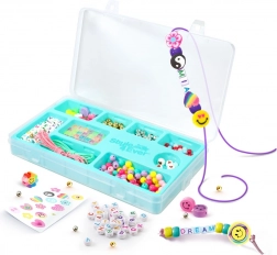 Tvorba je jednoduchá a zábavná – stačí navliekať a kombinovať farby, tvary a vzory. Sada je ideálna na domáce tvorenie, darčeky pre kamarátov aj detské párty.