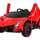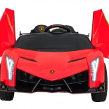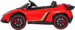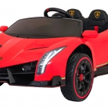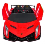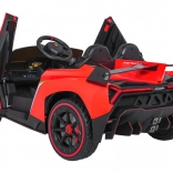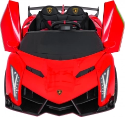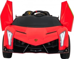Splňte detský sen o jazde v superaute. Elektrické auto LAMBORGHINI Veneno v sýto červenej farbe spája špičkový výkon a bezpečie: štyri motory 4×45 W, dvojitá batéria 12 V 7 Ah ×2, plynulý rozjazd a dve rýchlosti vpred/vzad. Robustné EVA kolesá, zadné odpruženie a svetlá výška 10 cm zaistia pohodlnú jazdu aj na nerovnom povrchu.