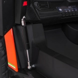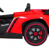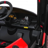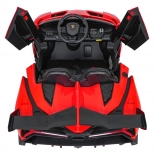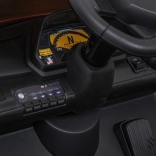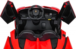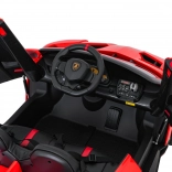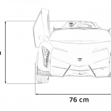 Realistický dizajn umocňujú otváracie nožnicové dvere, funkčné LED svetlá, športové detaily a dvojmiestne sedadlo z eko kože s bezpečnostnými pásmi. Ovládanie je intuitívne z kokpitu (volant, pedál), zároveň možno vozidlo plne riadiť rodičovským ovládačom 2,4 GHz s tlačidlom STOP pre okamžité zastavenie.